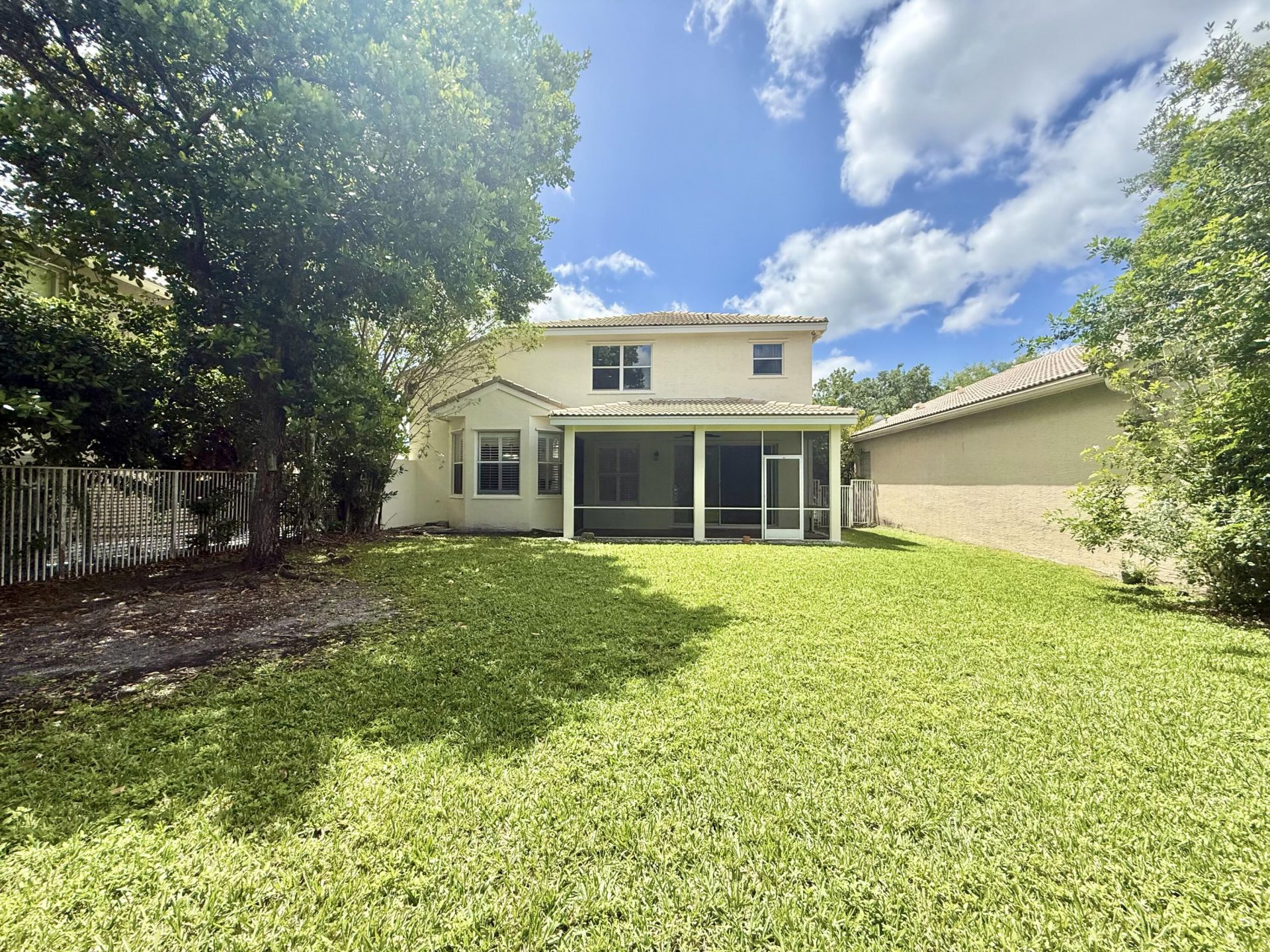 Light and bright, freshly painted 4BR/4BA home on a cul-de-sac in the prestigious manned-gated Saturnia community. This 2-story residence offers over 2,800 sq. ft. under air, featuring vaulted ceilings in the formal living and dining areas, an open floor plan, and abundant natural light. The eat-in kitchen includes granite countertops, new refrigerator, pantry, and open to family room. First floor offers a full bath and bedroom, plus a spacious family room leading to a screened patio and oversized fenced yard. Upstairs, the primary suite features dual baths, double vanities, Roman tub, shower, and two walk-in closets. Two additional bedrooms share a Jack & Jill bath. 2-zone A/C. Lawn and pest control included; HOA covers basic cable and internet. Quick Occupancy, no HOA Approval! Saturnia is a highly sought-after, manned-gated community in Boca Raton known for its beautifully maintained surroundings and resort-style living. Residents enjoy an impressive array of amenities, including a resort-style swimming pool and spa, elegant clubhouse, state-of-the-art fitness center, basketball and tennis courts, and a children's playground. Ideally located adjacent to Burt Aaronson South County Regional Park, Saturnia offers direct access to an exceptional range of outdoor and recreational facilities. Nearby attractions include Osprey Point Golf Course, Coconut Cove Water Park, Sunset Cove Amphitheater, and a dedicated canine park. This prime location provides residents with endless opportunities for leisure, fitness, and entertainment in a picturesque natural setting.