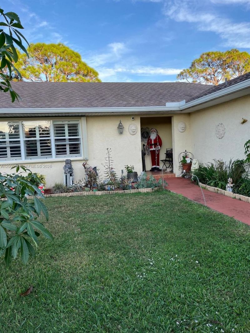 Welcome to your private sanctuary in Port St. Lucie! This stunning CBS home offers a unique 4BR/3BA layout featuring a professional garage conversion perfect as an in-law suite or rental opportunity with its own private bathroom and separate entrance. Major upgrades provide total peace of mind, including a Brand New Roof and Gutters (2024) and a New A/C (2025). The home is fortified with accordion shutters and partial impact windows, while the interior shines with updated bathrooms, plantation shutters, and a modern kitchen featuring new stainless steel appliances. The outdoor living space is a true tropical escape. Relax on the enclosed terrace and take in serene lake views. The fully fenced backyard includes a gate for direct lake access and a large, brand-new stainless steel shed for ample storage. Nature lovers will appreciate the absolute privacy of a wooded preserve located both in front of and behind the property and the beautiful lake views that always bring in all kinds of birds and animal life. Harvest your own fruit from the mature banana and avocado tree, all set against a backdrop of towering pine trees. With no HOA and a versatile layout, this property is perfect for multi-generational living or savvy investors. Schedule your showing today!