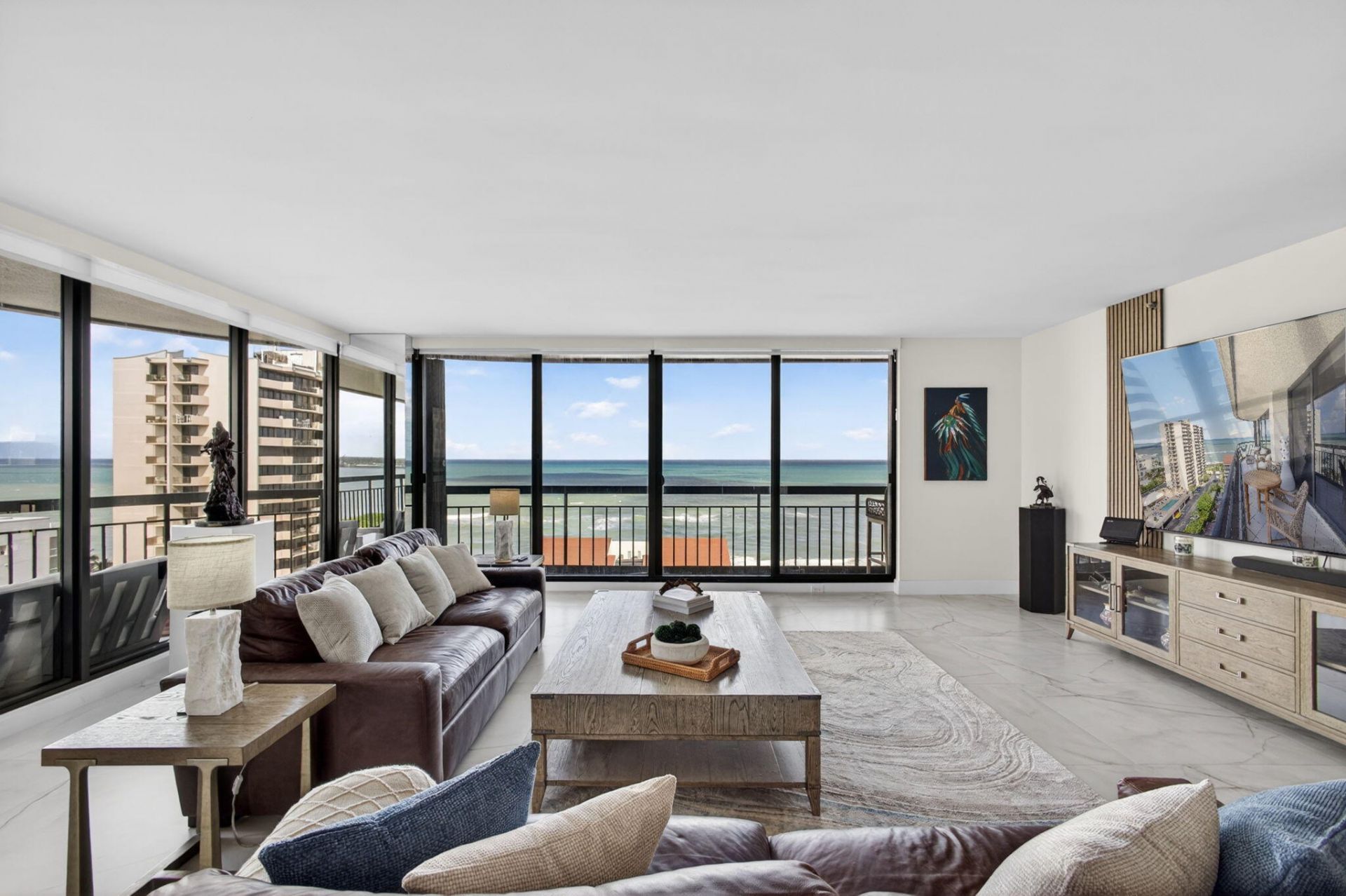 Oceanfront residence with Ocean and Intracoastal views from four balconies. Fully renovated down to the studs with a modern open layout and exceptional light and flow. Chef's kitchen with high-gloss cabinetry, waterfall quartz, and premium KitchenAid appliances including induction range and wine refrigerator. Four rebuilt bathrooms with porcelain finishes and Japanese toilets. Porcelain flooring, solid wood doors, custom closets, and motorized shades. Smart home, walnut feature wall, and designer lighting. New appliances (2025), laundry with steam closet, and water filtration. New roof and cooling tower (2025), impact windows. Pool renovation underway. Optional turnkey furnishings available. Completely renovated residence featuring a down-to-the-studs rebuild, open-concept layout, and integrated smart home technology. Walls removed to create a modern, open floor plan with enhanced light, flow, and sightlines Comprehensive renovation including updated plumbing, electrical, and interior systems throughout Entire residence upgraded with 36 x 36 large-format porcelain tile flooring All interior doors replaced with premium solid wood doors, including modern five-light glass doors, pocket doors, full-light mirrored closet doors, and custom hardware throughout Custom motorized window treatments throughout with blackout shades in bedrooms and solar shades in main living areas Fully renovated chef's kitchen featuring modern high-gloss white custom cabinetry with integrated soft-close systems, quartz countertops with waterfall edge, and premium KitchenAid appliances including induction range, integrated wine refrigerator, and concealed ventilation Four bathrooms completely rebuilt from the studs with high-end porcelain finishes, upgraded lighting, and luxury Japanese toilets Expanded primary hers shower within dual primary bath layout Custom closet buildout with integrated shelving systems Whole-home smart system with centralized and remote control capability Custom acoustic natural walnut wall paneling integrated into main living area and media wall Integrated media setup with large-format televisions included Designer lighting throughout, including statement chandelier in dining area Dedicated laundry room with stackable LG washer/dryer and steam closet Whole home water filtration system Fresh interior paint (2025) and high-end fixtures throughout All appliances new (2025) Building-Level Improvements All assessments paid in full New roof (2025) New cooling tower (2025) Resort-style pool deck renovation scheduled for completion September 2026 Impact windows approximately four years old Optional Turnkey Package Curated furnishings from Restoration Hardware and Pottery Barn available Living room (98) and bedroom (65) televisions included as part of furnishing package
